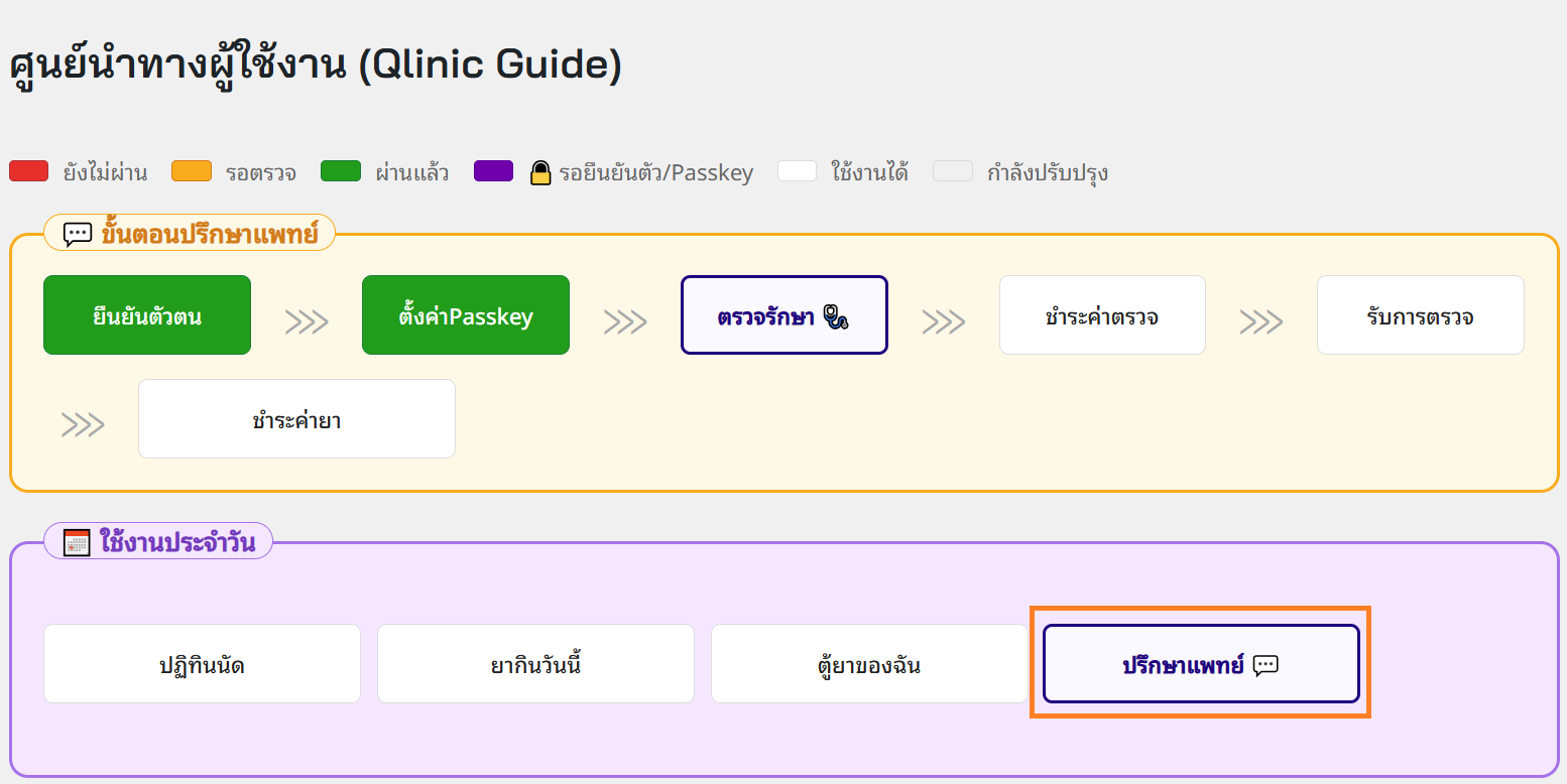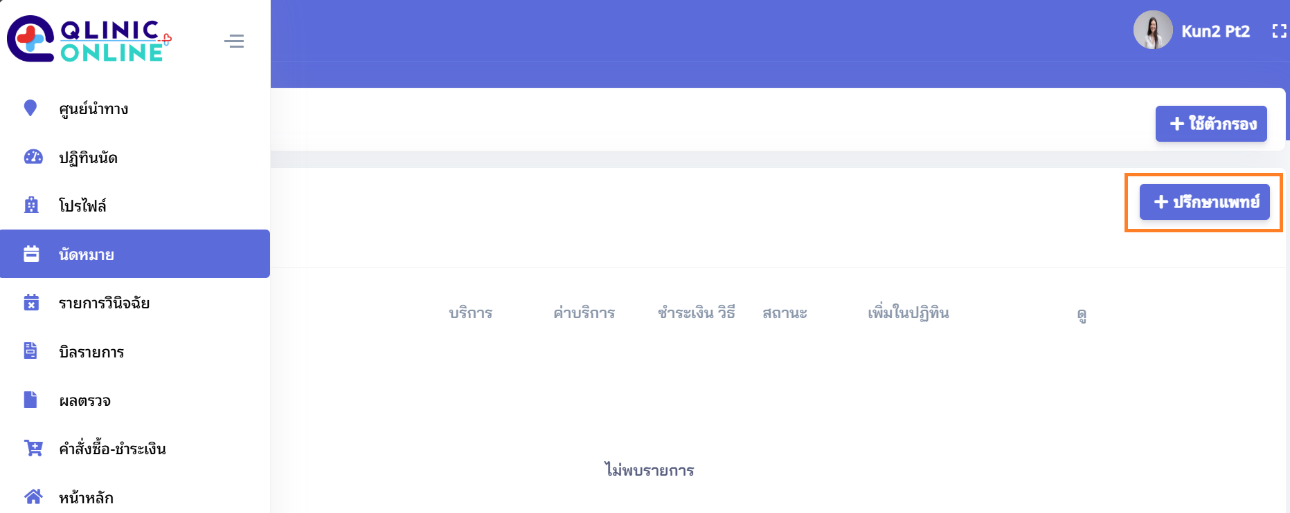 2. หน้าศูนย์นำทางผู้ใช้งาน (Qlinic Guide) คลิกป้าย นัดปรึกษาแพทย์