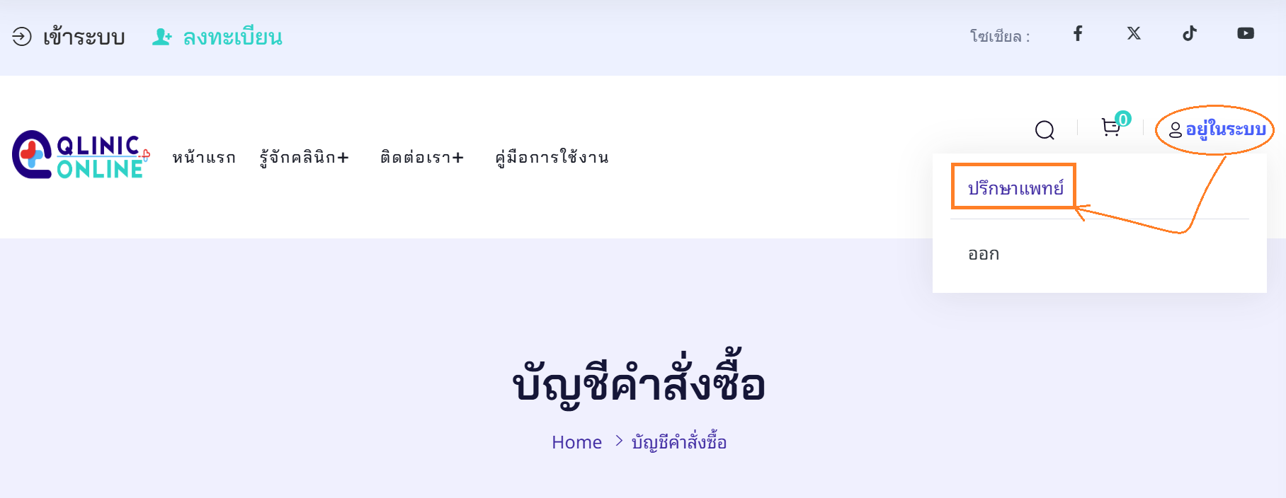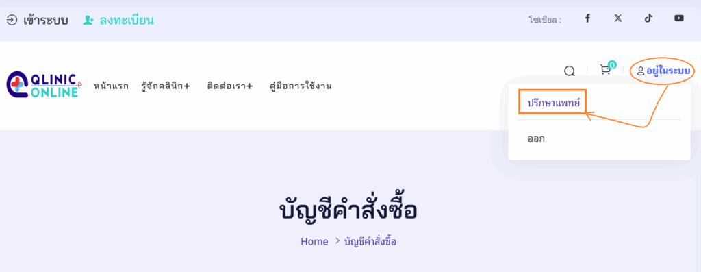 โดยคลิกที่เมนู “อยู่ในระบบ” เลือก ปรึกษาแพทย์