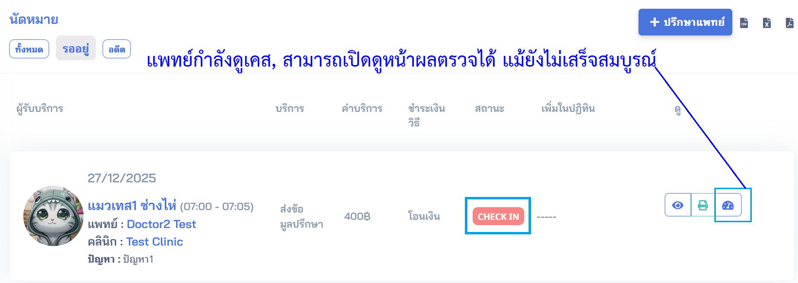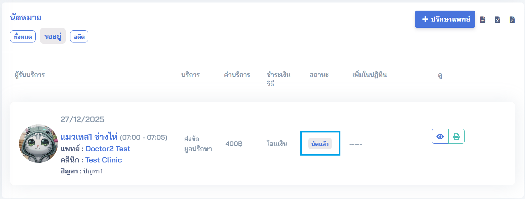 ผู้ใช้บริการสามารถกลับไปติดตามสถานะการปรึกษาแพทย์ได้ในหน้าปฏิทิน
