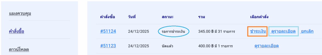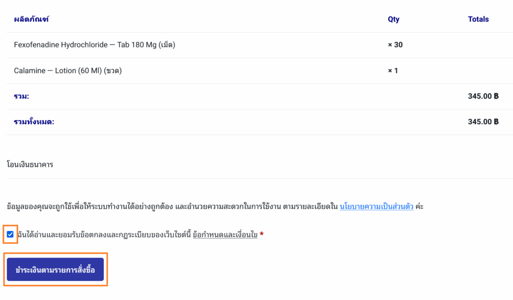 15. ที่หน้าคำสั่งซื้อ มีพบรายการสั่งซื้อยาเกิดขึ้น, ให้ดำเนินการ ชำระเงินตามยอดที่ระบุไว้