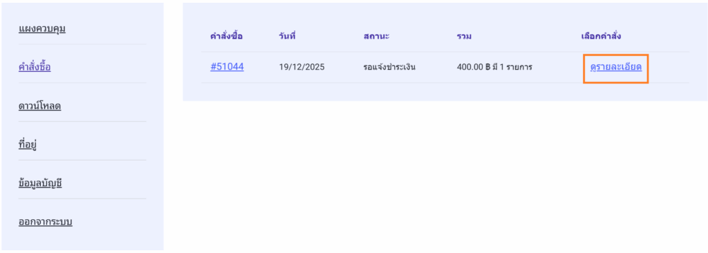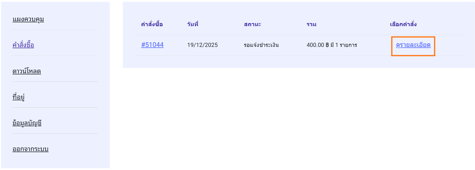 10. เปิดรายการคำสั่งซื้อล่าสุด, เลื่อนไปที่ข้อมูลการชำระเงิน และช่องทางการชำระเงิน